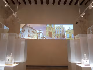 "Tradición y los últimos avances tecnológicos se compaginan" en este muestra que cuenta también con una gran pantalla audiovisual donde se proyectan grabaciones de ocho minutos de cada edificio hechas con 4.500 fotografías tomadas durante todo un día.