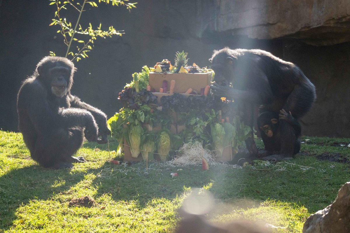 Imagen de la "fiesta de cumpleaños" para celebrar el primer aniversario del chimpacé Ekon. - BIOPARC