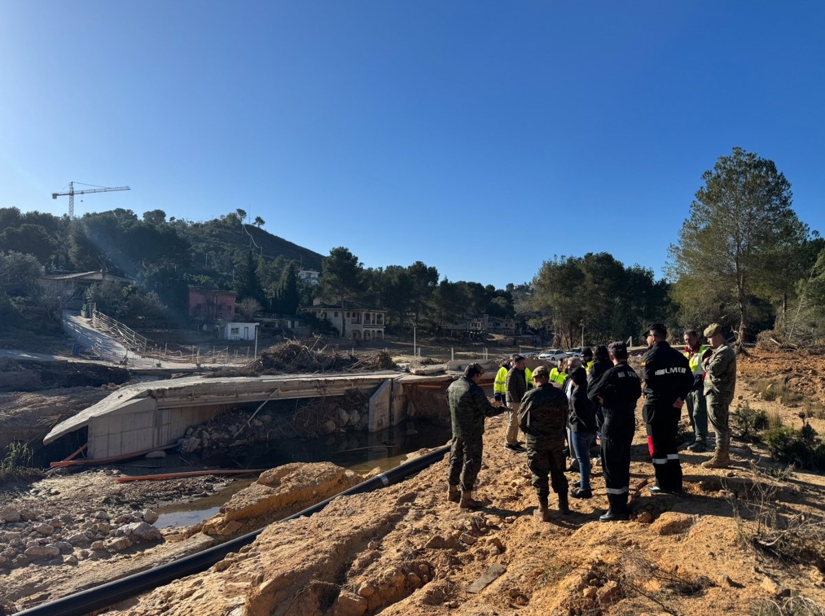 Equipos técnicos del Ayuntamiento de Chiva (Valencia), el Ejército, la Unidad Militar de Emergencias (UME) y la Conselleria de Infraestructuras han analizado este lunes las posibles soluciones al acceso a la urbanización Sierra Perenchiza, destrozada tras la riada del pasado 29 de octubre.