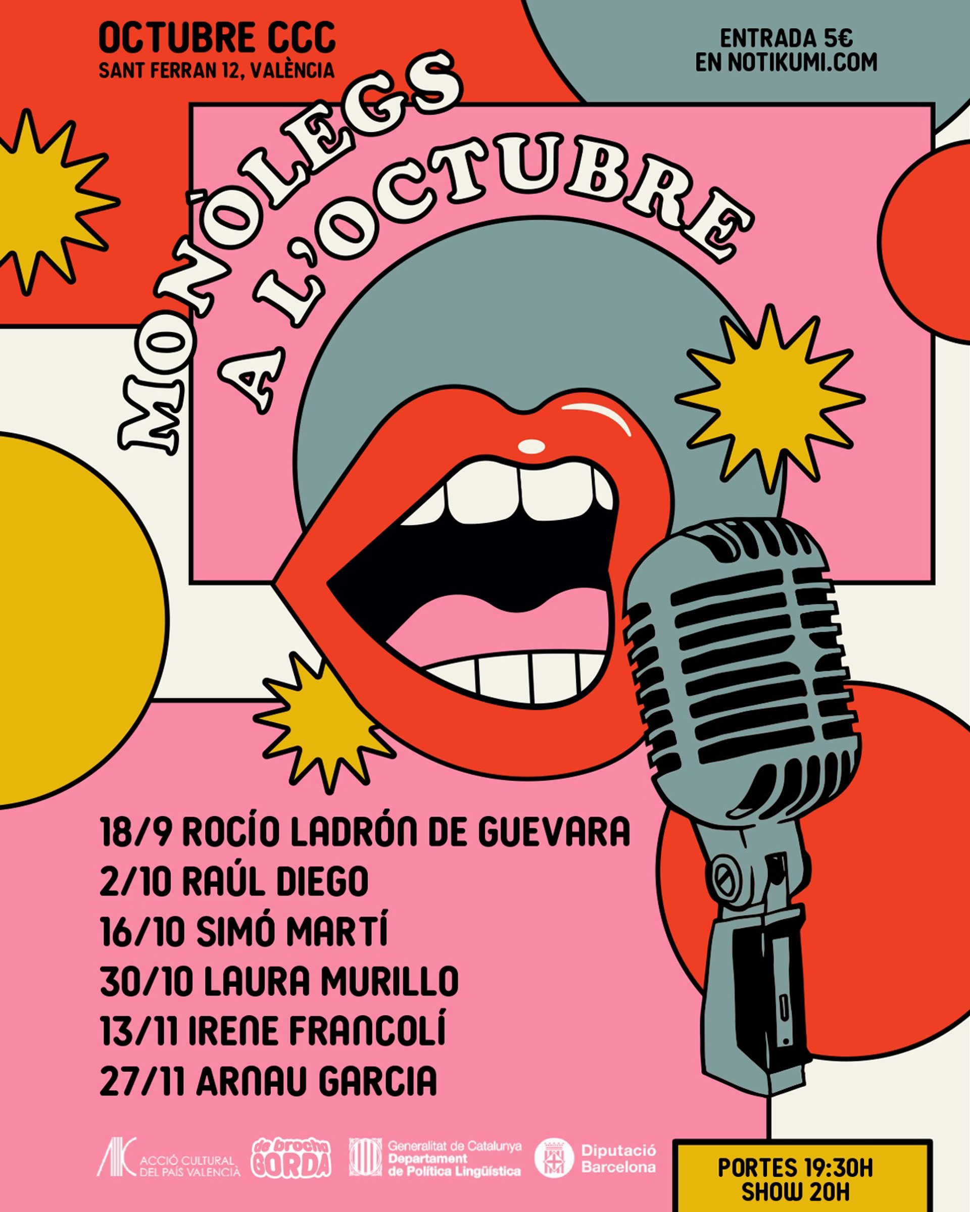 Con este ciclo, ACPV pretende "hacer crecer la oferta de humor en valenciano, abrir el escenario a nuevas voces y consolidar el Octubre CCC como casa de la cultura popular y contemporánea".