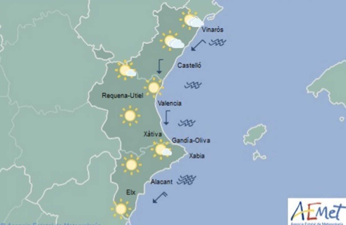 El cielo seguirá este martes nuboso en el cuadrante nororiental de Castellón y las temperaturas se mantendrán sin cambios salvo las máximas en la provincia de Valencia donde descenderán las máximas y no se superarán los 34ºC, según Aemet.