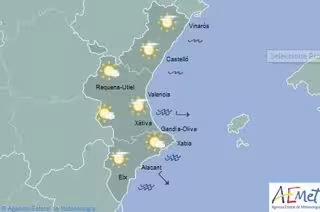 salvo un ascenso de las máximas en el sur de Alicante de modo que el termómetro no superarán los 20 grados en Alicante y Valncia y los 18 grados en Castellón. Por su parte, el viento soplará variable flojo.
