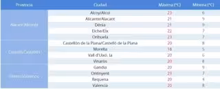 Así, esta jornada las temperaturas se mantendrán sin cambios y pueden ir localmente en ascenso. En las capitales de provincia se llegarán a los 21ºC en Alicante y los 20ºC en València y Castellón.