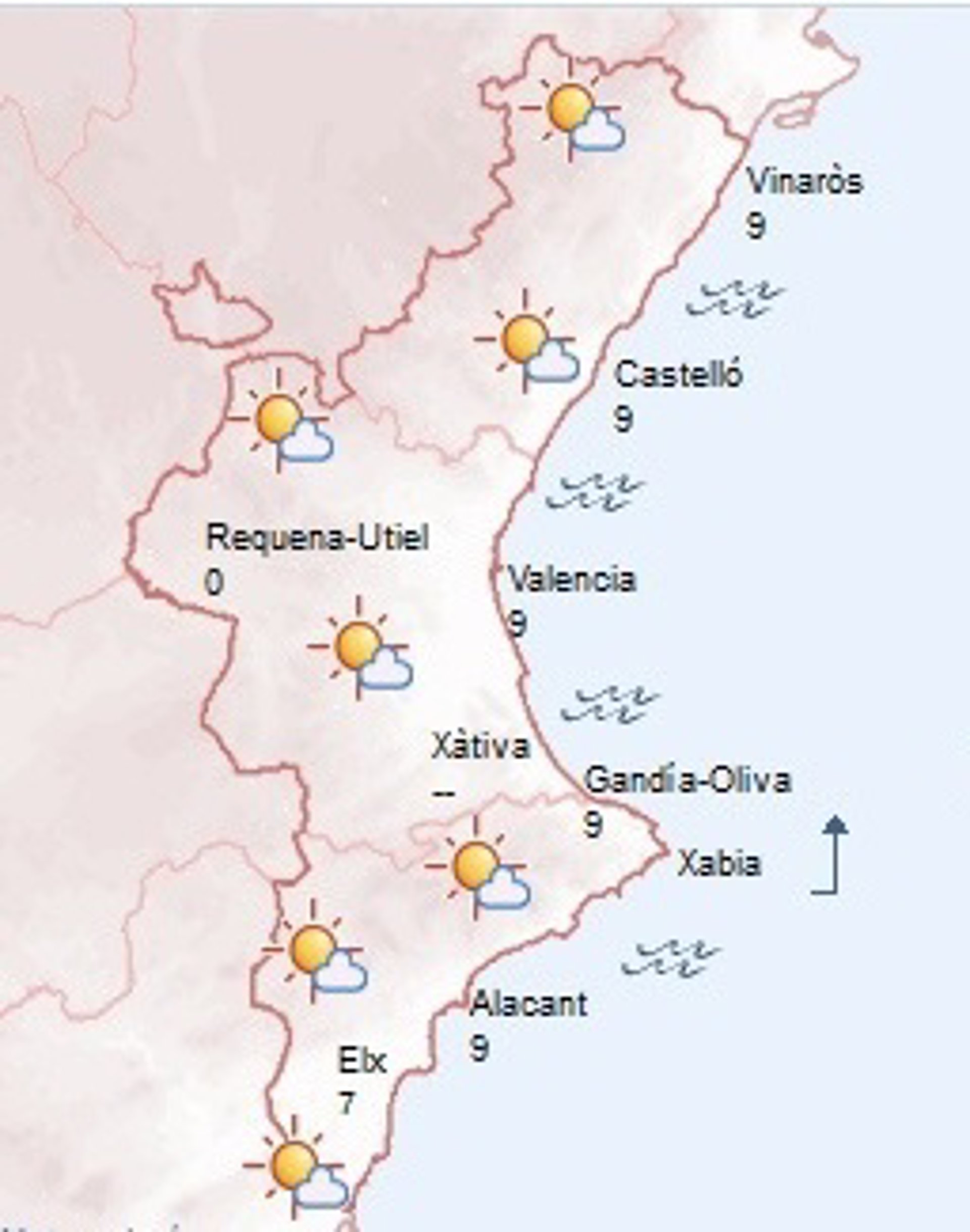 El cielo sigue poco nuboso, aunque se registrarán algunos intervalos de nubes altas, mientras que las temperaturas seguirán estables este miércoles en la Comunitat Valenciana, según la predicción de la Agencia Estatal de Meteorología (Aemet).