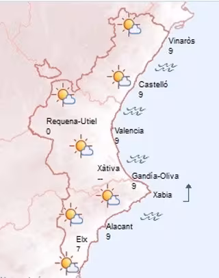Así, el mercurio registrará pocos cambios de forma que las máximas no superarán los 21 grados mientras que por la noche bajarán hasta los 0 grados en Requena (Valencia).