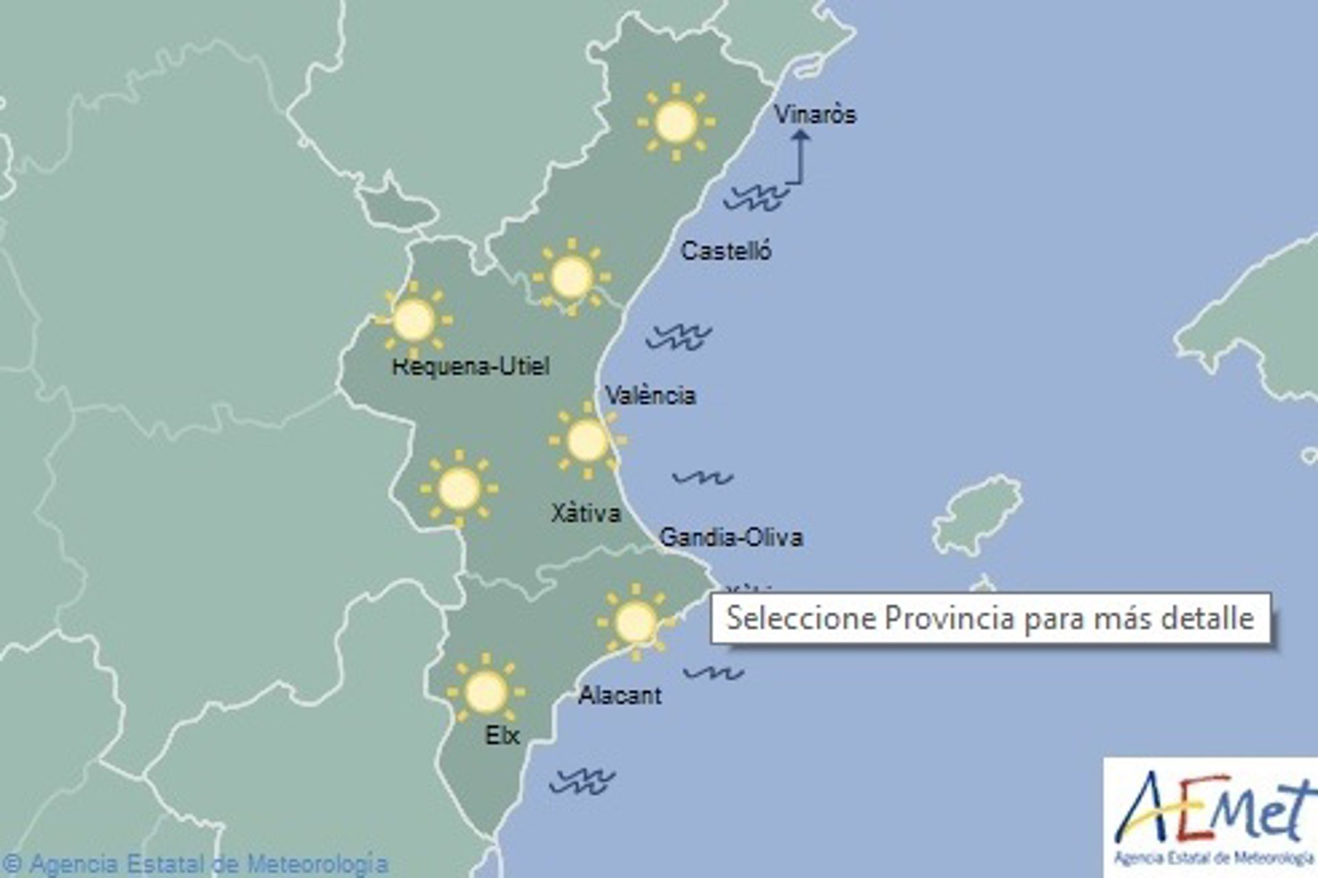 Además, en la provincia de Valencia, Gandia y la capital tendrán máximas de 28 y 27 grados, respectivamente. Las mínimas serán de 12 grados en Ontinyent y Requena, de 14 grados en Gandia y de 15 en Valencia.