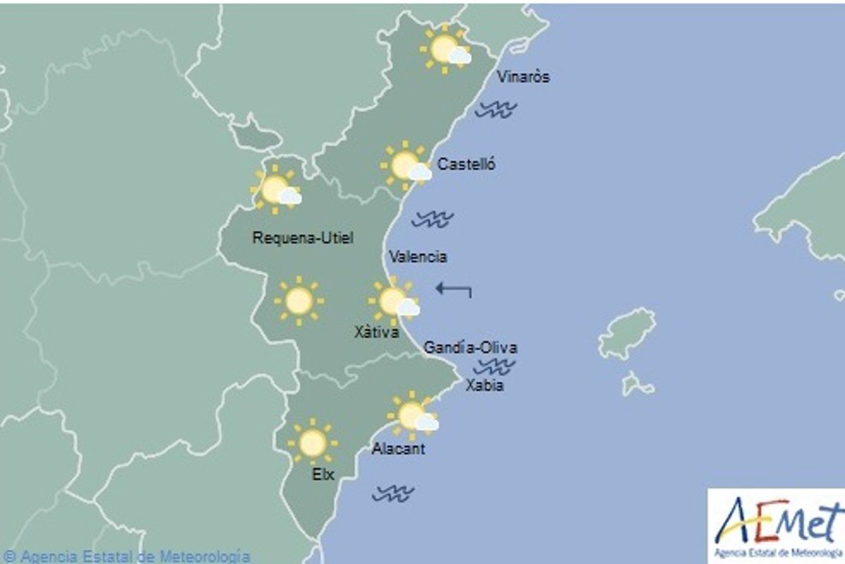 Así, el mercurio en la Comunitat no superará los 17 grados que se registrarán de máxima en Alicante. En el resto de la región, se mantendrá en los 16 grados en Elche, en los 15 en Valncia, Orihuela y Dénia, mientras que en Castellón llegará a los 14 grados.