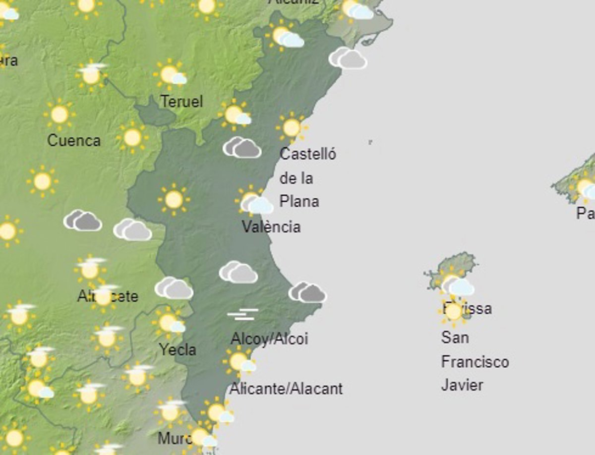 En particular, en el interior de Castellón se espera nubosidad de evolución diurna, sin descartar algún chubasco aislado o tormenta ocasional por la tarde, según la predicción de la Agencia Estatal de Meteorología (Aemet).