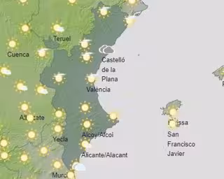 El predominio de cielos despejados y las temperaturas máximas que rozarán los 30 grados marcarán este Domingo de Resurrección en la Comunitat Valenciana, según la predicción de la Agencia Estatal de Meteorología (Aemet).