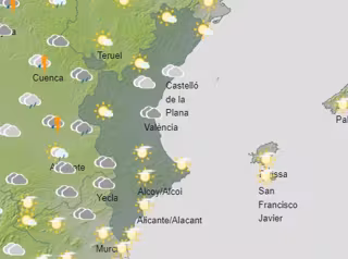 Finalmente, en Alicante, se esperan máximas de 30 en Orihuela, 29 en Alcoi, y 28 en Elche, Alicante y Dénia. Las mínimas serán de 16 en Elche, 17 en Orihuela y 18 en la capital, Alcoi y Dénia.