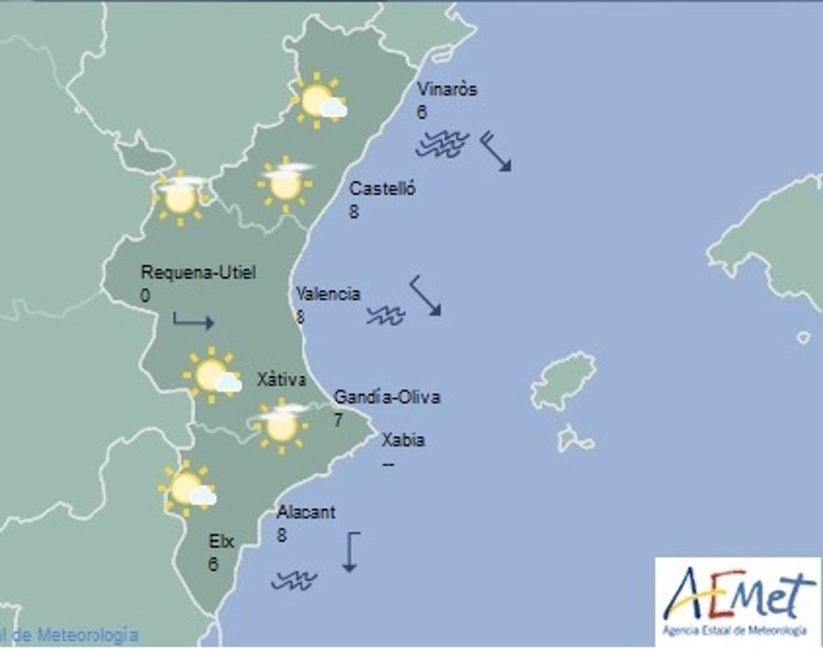 Los cielos estarán poco nubosos este miércoles y las temperaturas irán en descenso y no superarán los 17 grados en la Comunitat Valenciana, según ha informado la Aemet.