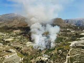 El fuego se ha iniciado en la mañana de este martes, antes de las 11.00 horas, en la partida rural de Onaer ubicada en el termino municipal de Callosa, y es visible desde el casco urbano y otros municipios.