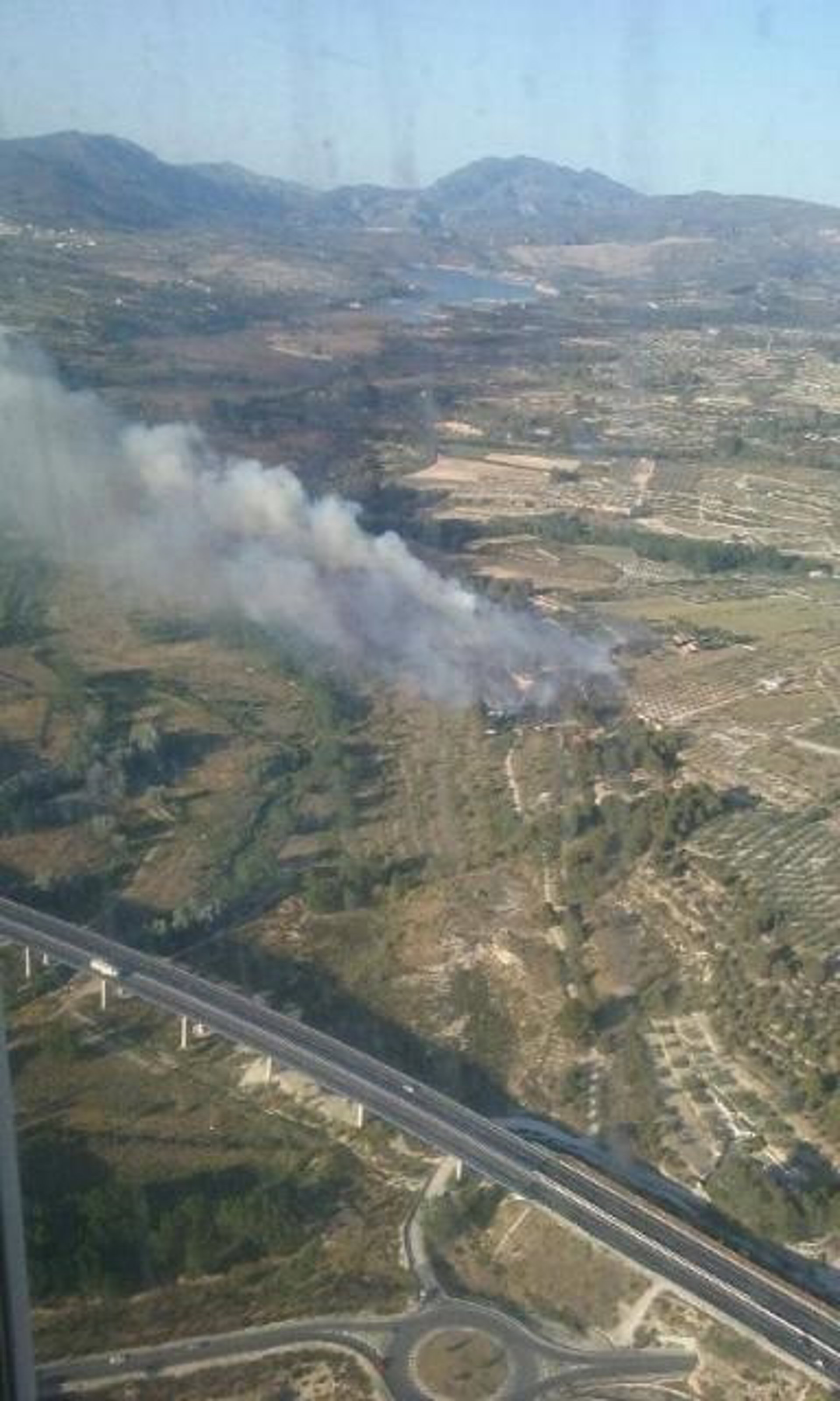 El incendio, que se ha declarado en el cauce del río Serpis situado entre esta localidad y Alcocer de Planes, se ha iniciado en torno a las 19.15 horas y continúa activo, con cinco medios aéreos trabajando.