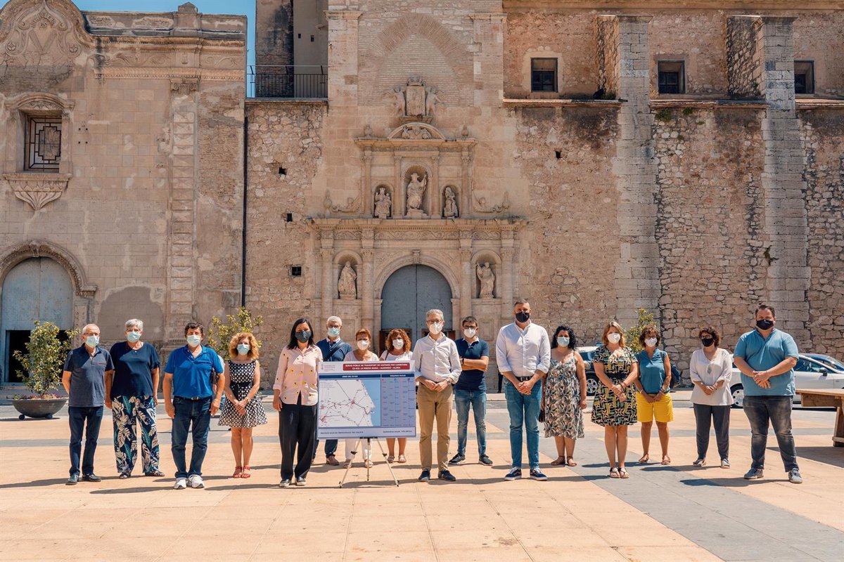 El conseller de Política Territorial, Obras Públicas y Movilidad, Arcadi España, presenta las nuevas rutas en lun acto que ha contado con la asistencia de alcaldes y alcaldesas de la Ribera - GVA