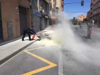 Agentes de la Policía Local de Alicante han extinguido este martes el incendio que ha afectado a un vehículo que circulaba por la avenida de Novelda, cuando se acercaba a un control policial.