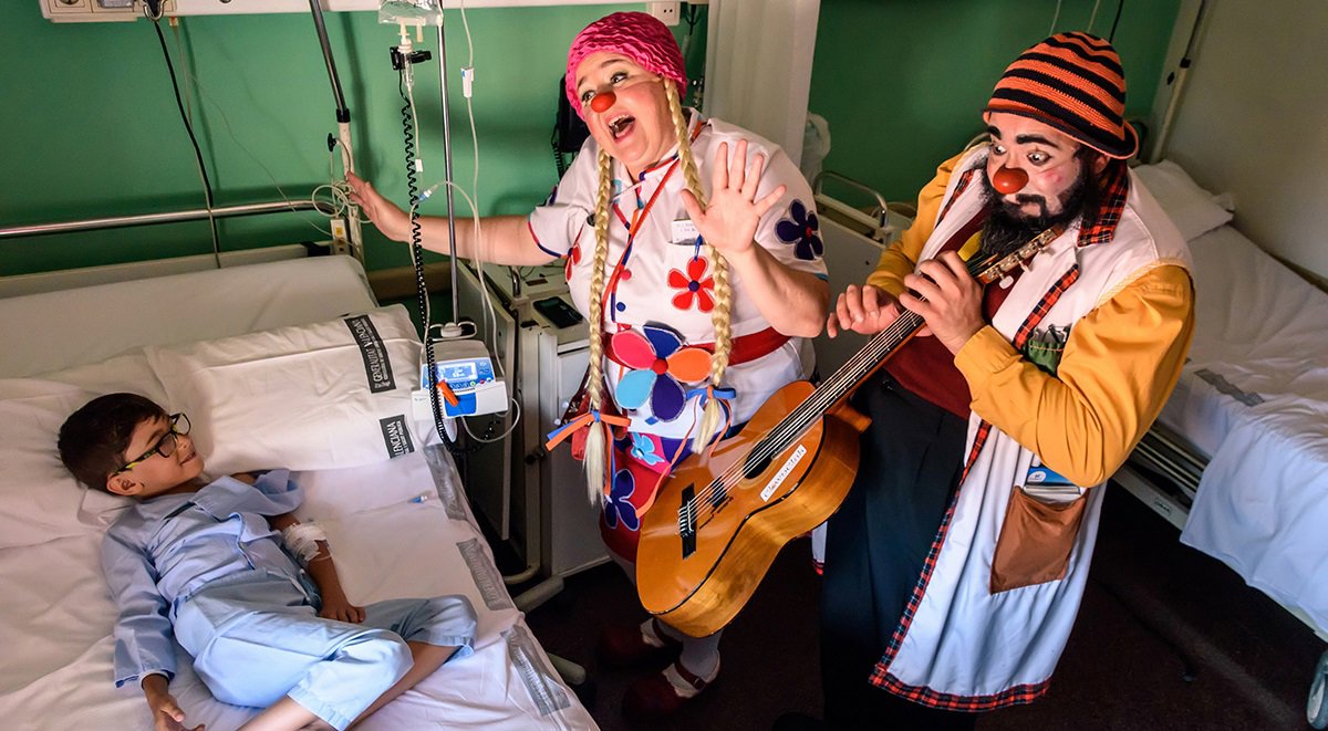 Los pacientes pediátricos reciben en sus habitaciones las visitas de los artistas profesionales de Payasospital cada semana. Durante 25 años, esta ONG se ha especializado en transformar el entorno hospitalario creando momentos de alegría y felicidad que contribuyen a mejorar el bienestar emocional de los menores ingresados y sus familiares.