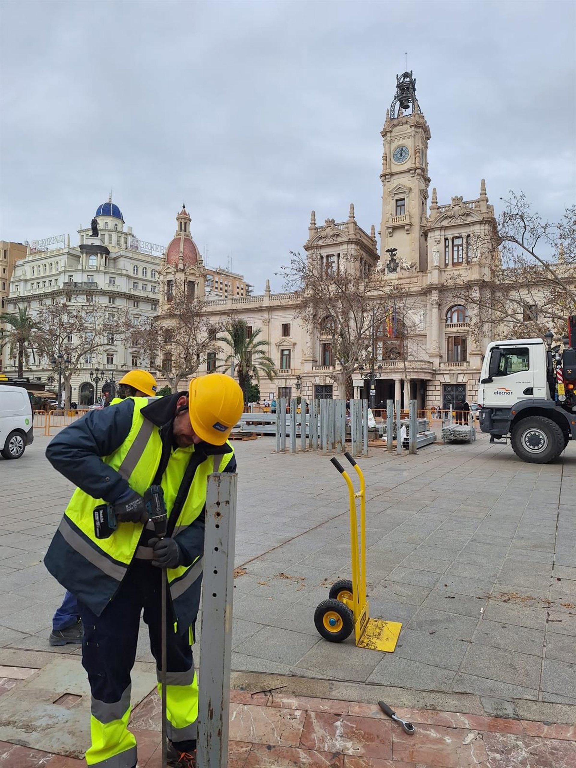Comienza la instalación de la 'jaula' en la plaza del Ayuntamiento de València para las 'mascletaes' de Fallas - AYUNTAMIENTO DE VALÈNCIA