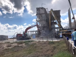 Tras los trabajos de retirada del amianto, que tuvieron lugar este verano, hoy la mercantil titular de la antigua concesión cumple las resoluciones y sentencias de forma voluntaria. Está previsto que la demolición dure cuatro semanas y el servicio de vigilancia del Servicio Provincial de Costas de Alicante estará presente para garantizar la integridad del DPMT.