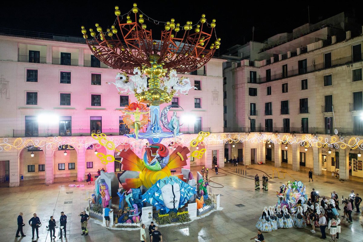 Archivo - Imagen de archivo de la 'cremà' de las Hogueras de 2024 en la plaza del Ayuntamiento de Alicante - JOAQUIN P. REINA / Europa Press - Archivo