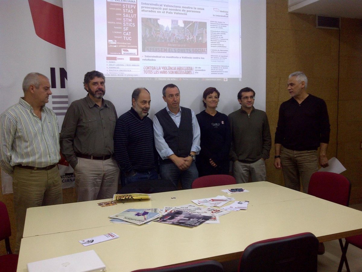 Baldoví, que continúa su ronda de entrevistas con entidades, organismos, asociaciones y sindicatos para conocer las inquietudes y reivindicaciones de la sociedad valenciana, se ha reunido con parte de la directiva de Intersindical Valenciana, con Vicent Mauri a la cabeza, para hablar de las propuestas de Compromís y, al mismo tiempo, asumir las incorporaciones de la coordinadora sindical al programa.
