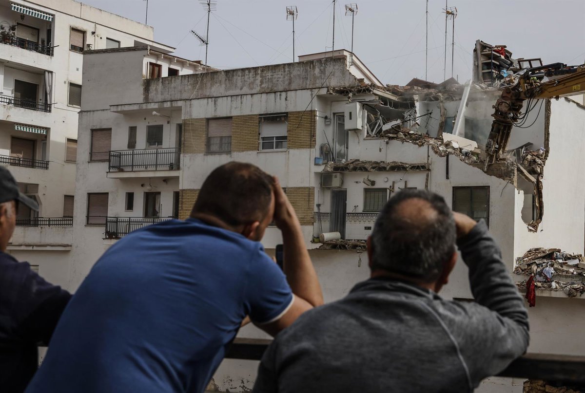 Vecinos observan el derribo de viviendas con maquinaria pesada en Chiva - Rober Solsona - Europa Press