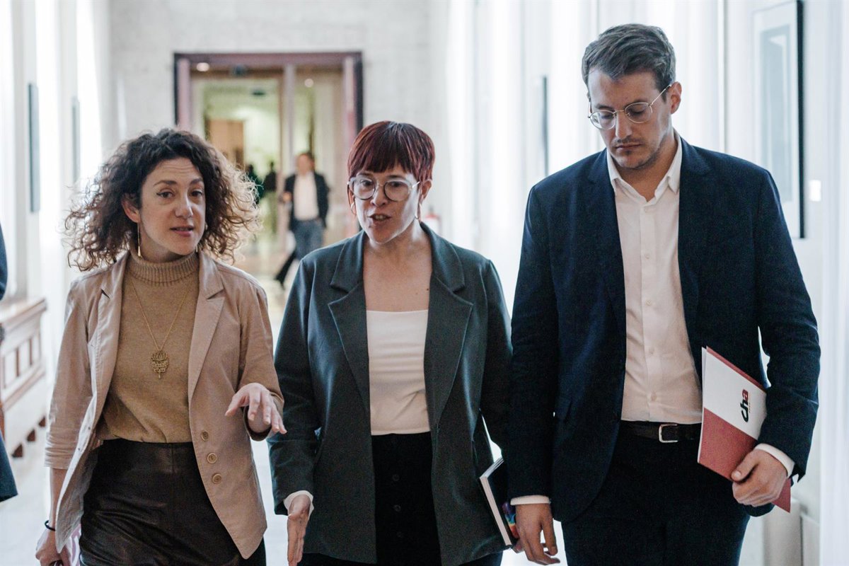 Archivo - (I-D) Los diputados de Sumar Aina Vidal, Àgueda Micó y Jorge Pueyo, llegan a una reunión de la Junta de Portavoces, en el Congreso de los Diputados, a 11 de febrero de 2025, en Madrid (España). - Carlos Luján - Europa Press - Archivo
