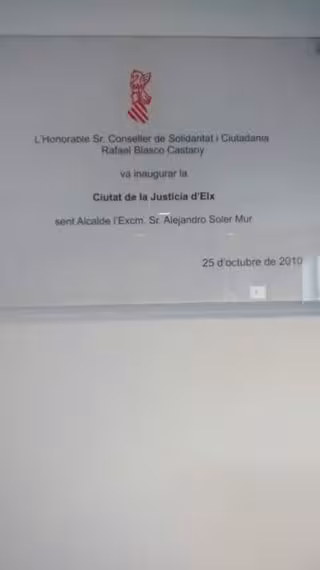 Mollà, a través de un comunicado, ha apuntado que "esta placa fue colocada en 2010 cuando Blasco, como conseller de Solidaridad y Ciudadanía, inauguró el complejo judicial, pero entendemos que ahora que ha sido declarado culpable de los delitos de malversación, prevaricación y falsedad por las ayudas públicas al tercer mundo el cartel tiene que retirarse".