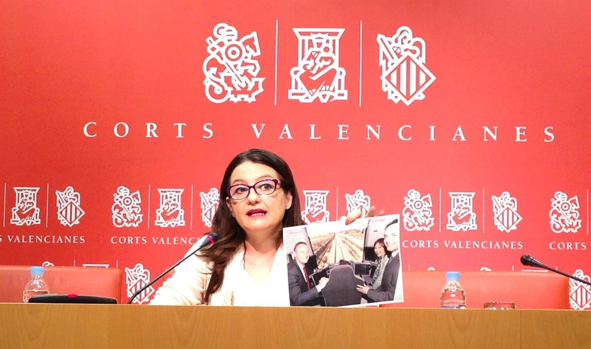 "A Tomás Gómez se lo han cargado por una foto como ésta", ha agregado la dirigente de Compromís, que ha mostrado otros ejemplos de "fotos que han de pasar a la historia" como la inauguración del aeropuerto de Castellón, con Francisco Camps y Carlos Fabra.
