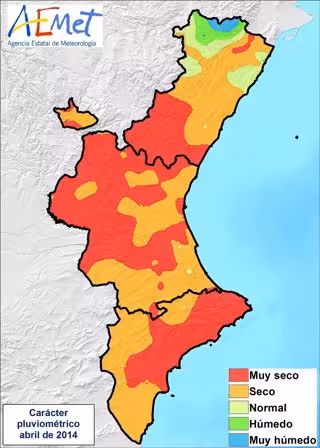 La única excepción de la escasez de lluvias de abril está en la zona más septentrional del territorio, en la Tinença de Benifassà, donde varias tormentas dejaron un acumulado de hasta 145.6 l/m2 en la estación de Fredes. No obstante, el mes ha sido muy seco en el 48% del territorio, seco en el 45%, normal en el 5% y húmedo o muy húmedo en el 2%.