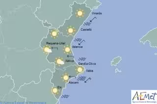 Las mínimas más frescas se registrarán en el interior, con 15 en Requena, 16 en Morella y 17 en Alcoi. Las mínimas más altas serán los 21 grados de Alicante, Castelló, Gandia, València y Vinaròs.
