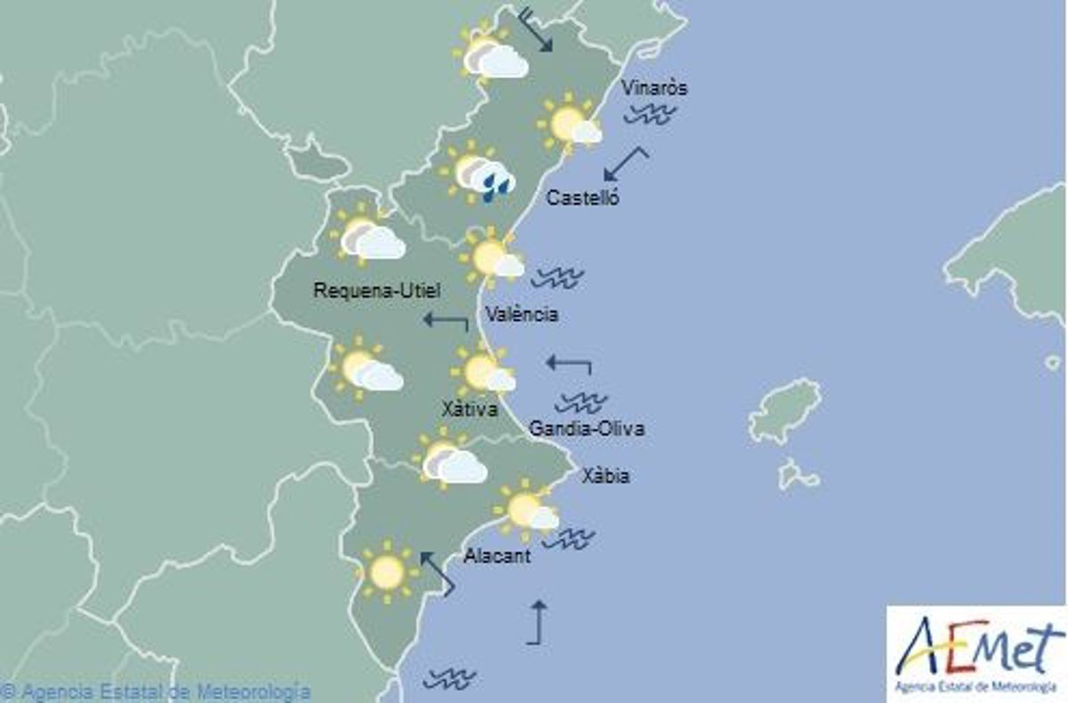La Comunitat Valenciana registrará chubascos dispersos en las horas centrales de este domingo, acompañados de barro y ocasionalmente de tormenta, mientras que las temperaturas experimentarán un ligero descenso en general, según la predicción de Aemet.