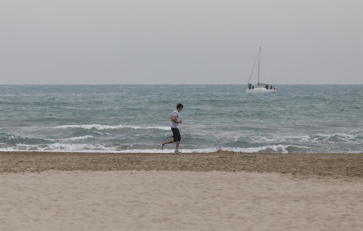 Un hombre hace deporte con mascarilla en la playa la Malvarrosa en Valncia. - Rober Solsona - Europa Press