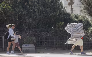Archivo - Una persona se refugia con un pañuelo del viento en el paseo de la playa de la Malvarrosa - Rober Solsona - Europa Press - Archivo
