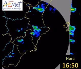 Situación de los núcleos tormentosos en la Comunitat Valenciana a las 16.50 del 1 de septiembre - AEMET