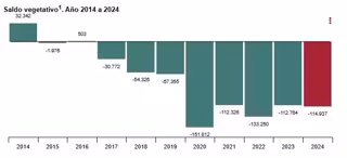 Infografía del saldo vegetario 2014-2024 del INE. - INE