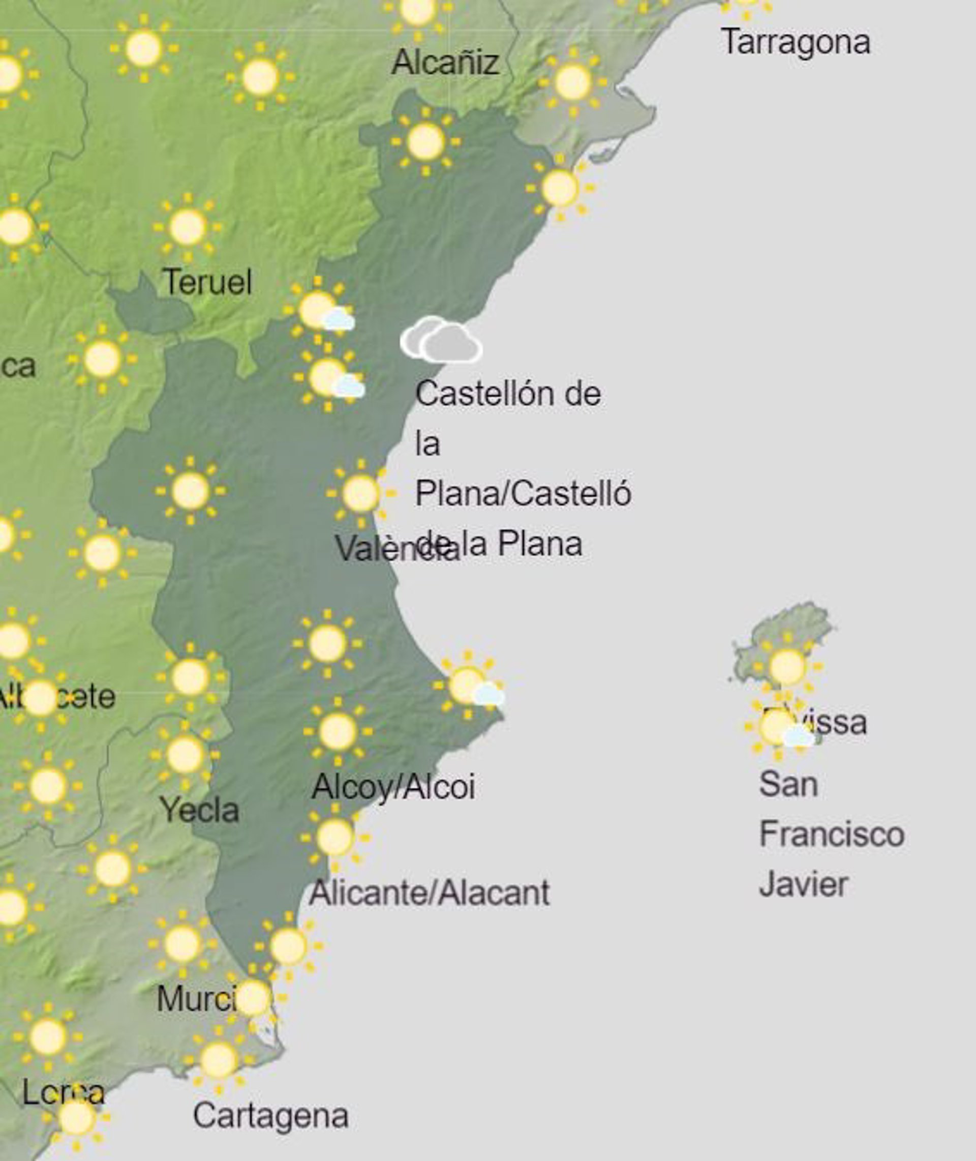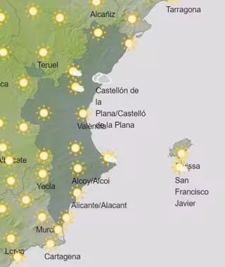 Las temperaturas mínimas registrarán un ligero descenso, según la predicción de la Agencia Estatal de Meteorología (Aemet). Por su parte, las máximas registrarán un ascenso notable en Valencia, y un ligero ascenso o sin cambios en el resto de la Comunitat Valenciana.
