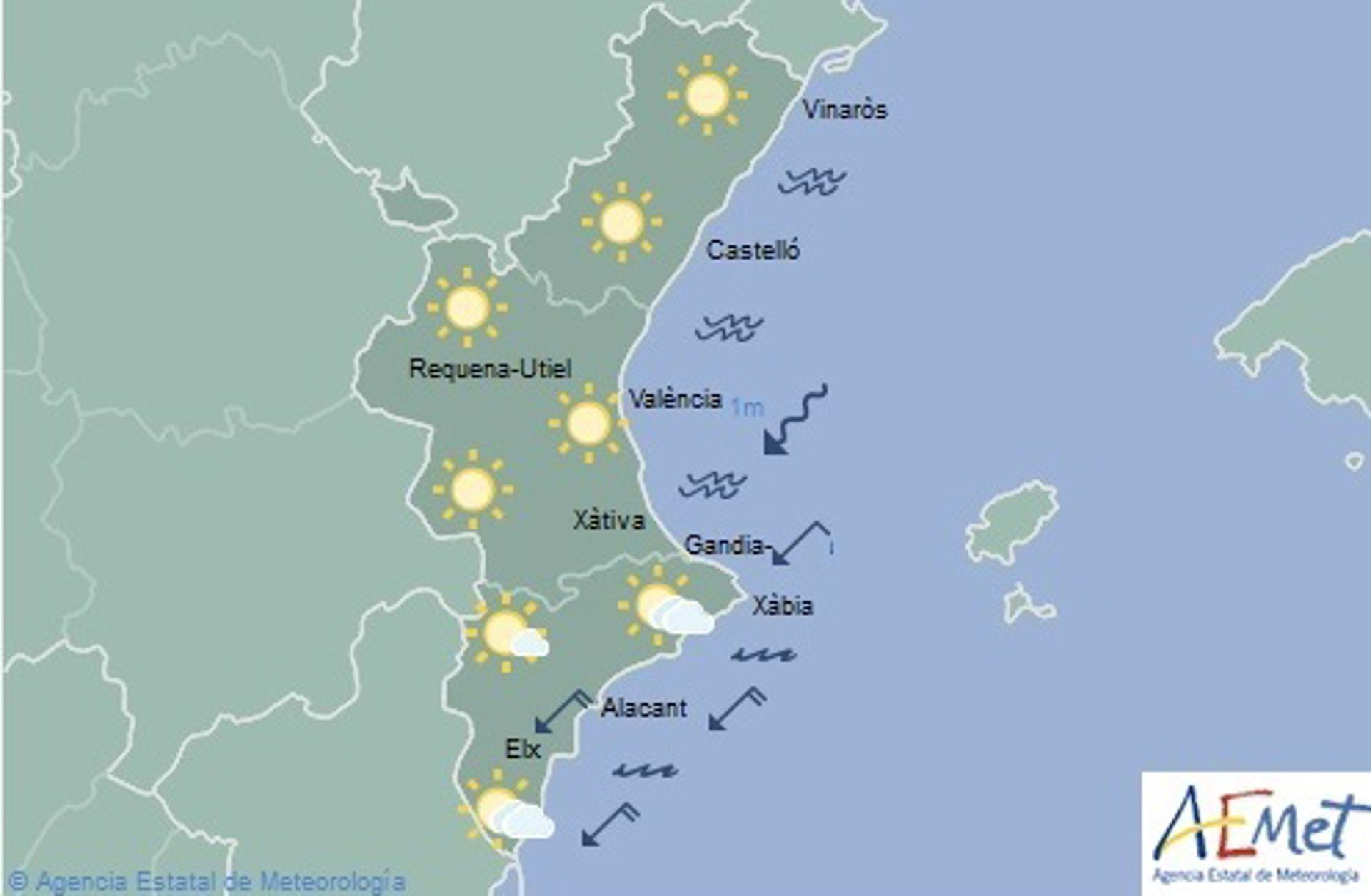 Por el otro lado, la máxima más elevada serán los 16 grados de Alicante. En Castelló, Elx, Orihuela y Valncia se registrarán 15 grados, mientras que en Dénia, Gandia, la Vall d'Uixó y Vinars tendrán 14. En el interior, Morella no superará los siete grados de máxima, Alcoi y Requena tendrán 10 y Ontinyent, 12.