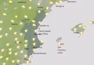 Finalmente, en la provincia de Castellón, las máximas se situarán en torno a los 20, como es el caso de la Vall d'Uix, Vinars o Castelló de la Plana, y las mínimas bajarán hasta los 11 de la capital o los 5 de Morella.