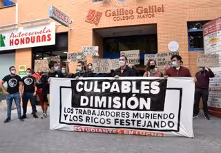 La protesta, convocada por el colectivo Estudiantes en Lucha, ha reunido este miércoles a alrededor de una treintena de jóvenes tras una pancarta en la que se podía leer: 'Culpables dimisión. Los trabajadores muriendo y los ricos festejando'.