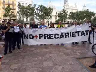 A las 19 horas ha comenzado la concentración, organizada por los colectivos Riders x Drets de Valncia, No + Precarietat e Intersindical Valenciana con la lectura de un manifiesto titulado 'La precarietat mata' de la mano del portavoz de Intersindical Valenciana, Marco Antonio Llerena.