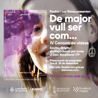 Estudiantes de ESO, Bachillerato y FP de la Comunitat podrán presentar hasta el 15 de diciembre sus vídeos para el concurso 'de Major Vull se com...', organizado por Las Naves y Foment de la Investigació Sanitria i Biomdica de la Comunitat Valenciana (Fisabio), para visibilizar a las mujeres y sus éxitos en los ámbitos de la ciencia y la tecnología y mostrar las repercusiones del patriarcado en la sociedad.