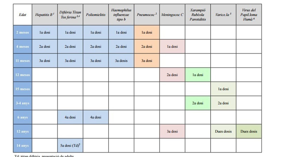 La Conselleria de Sanitat Universal i Salut Pública ha modificado el calendario de vacunación sistemática infantil de la Comunitat Valenciana a través de la Resolución de 1 de enero de 2017, publicada en el Diari Oficial de la Generalitat Valenciana (DOGV). Entre otras cosas, la resolución contempla que a los 2, 4 y 11 meses de edad se administra una dosis de vacuna frente a difteria, tétanos, tos ferina, poliomelitis, Haemophilus influenzae tipo B y hepatitis B, mientras que se suprime la vacuna de hepatitis B al nacer.