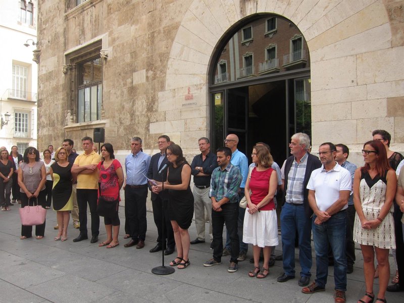 El Gobierno valenciano ha convocado este viernes un minuto de silencio ante el Palau de la Generalitat en el que ha mostrado, con la presencia del jefe del Consell, Ximo Puig, la vicepresidenta, Mónica Oltra, y numerosos miembros del ejecutivo, la repulsa "en nombre del pueblo valenciano" por el fallecimiento de la exedil de Esquerra Unida en el Ayuntamiento de Serra (Valencia) y para "condenar todas las acciones violentas que el terrorismo machista comporta".