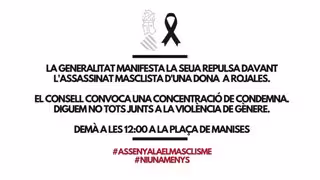 El Consell de la Generalitat Valenciana ha convocado para este miércoles una concentración en repulsa por el asesinato machista de una mujer en la localidad alicantina de Rojales.