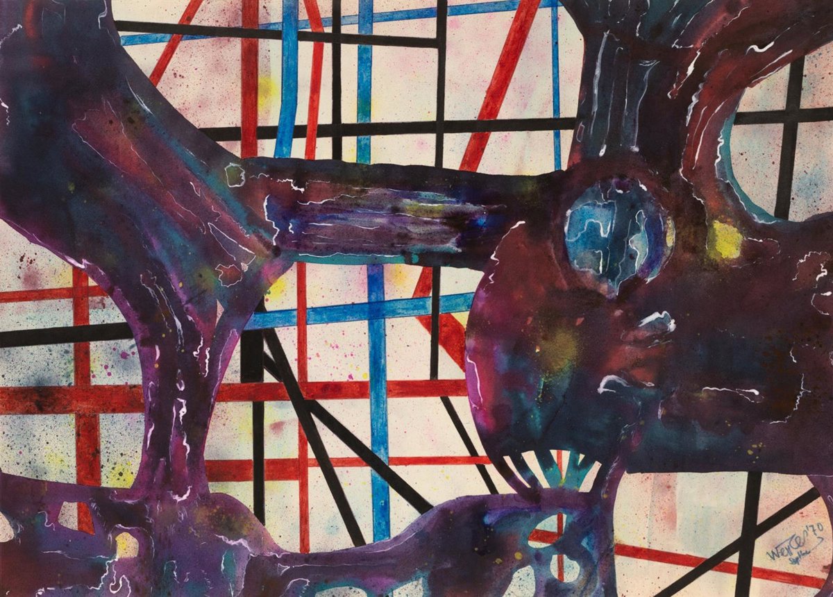 Por último, se ofrece su abstracción, "que conjuga con maestría la abstracción geométrica con ciertos atisbos de abstracción lírica y un genial tratamiento de la composición y el color", ha destacado Mulet. Destaca aquí una de las grandes piezas de la exposición 'Grand Tableau' (2021), perteneciente a la colección del MACVAC.