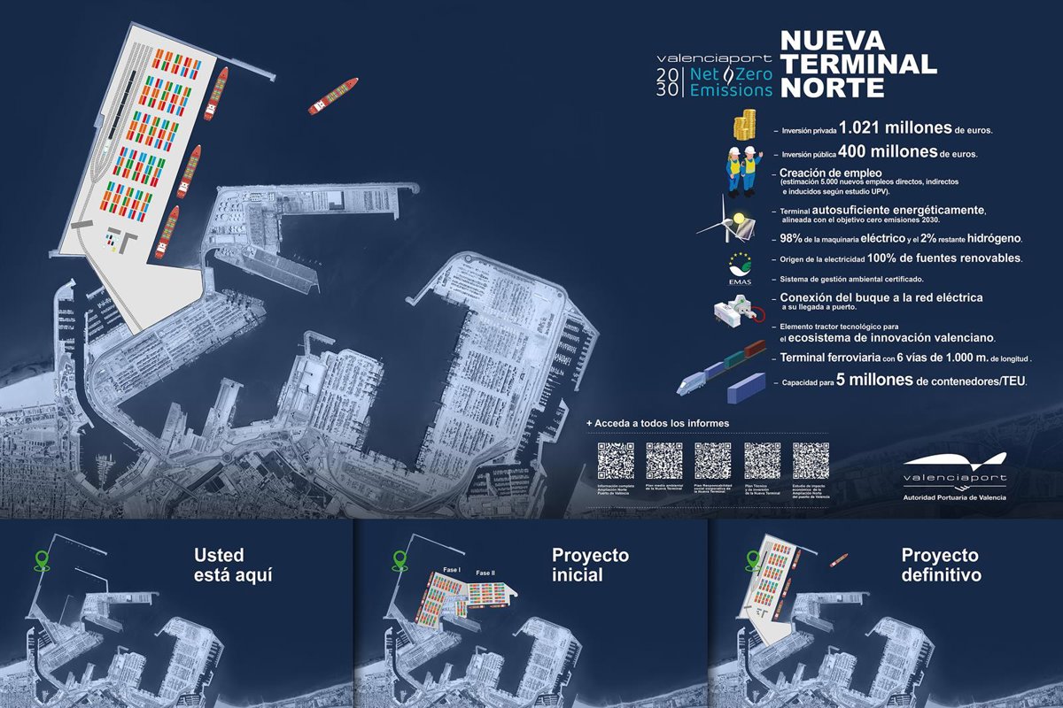 La construcción de la nueva terminal de norte de contenedores del puerto de Valncia tendrá un coste de 542 millones de euros y un plazo de ejecución de 58 meses, por lo que se prevé que se prolongue hasta 2027, según ha informado la Autoridad Portuaria de Valencia (APV). La entidad ha publicado en su web este proyecto constructivo para que pueda ser consultado.