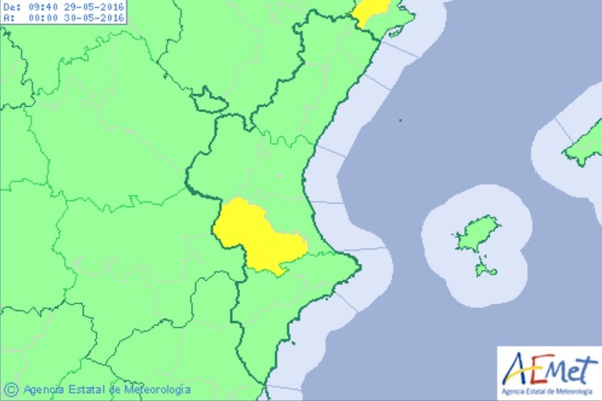 El interior sur de la provincia de Valencia continuará en alerta amarilla por fuertes rachas de viento del oeste este domingo, según la predicción de la Agencia Estatal de Meteorología (Aemet). Por este motivo, la Generalitat ha declarado el nivel dos (alto) de preemergencia por riesgo de incendios en el interior de Valencia y Castellón y la mirad norte de Alicante.