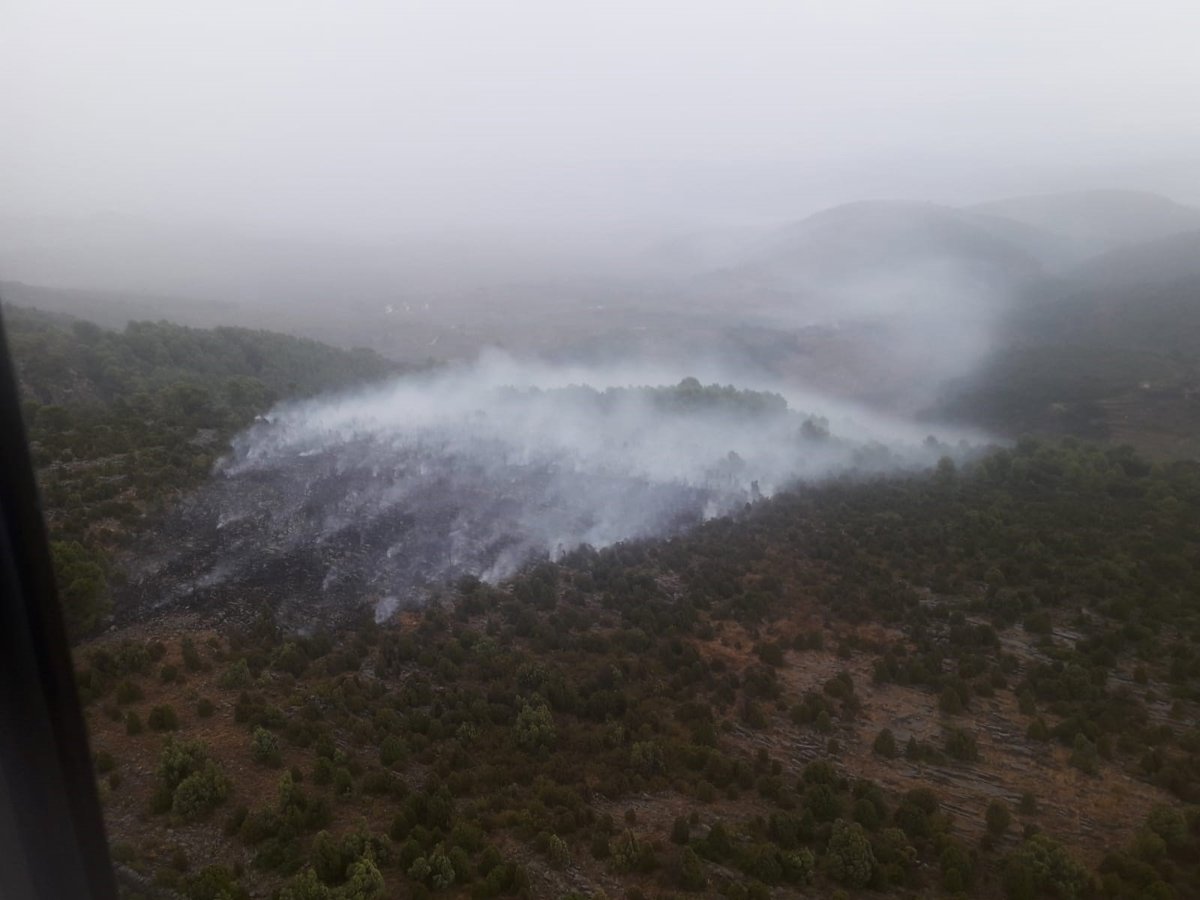 Efectivos de bomberos terrestres y aéreos han dado por controlado el incendio declarado durante la tarde de este viernes causado por la caída de un rayo en Atzeneta del Maestrat (Castellón), que ha sido reclasificado como incendio de vegetación y no como forestal.