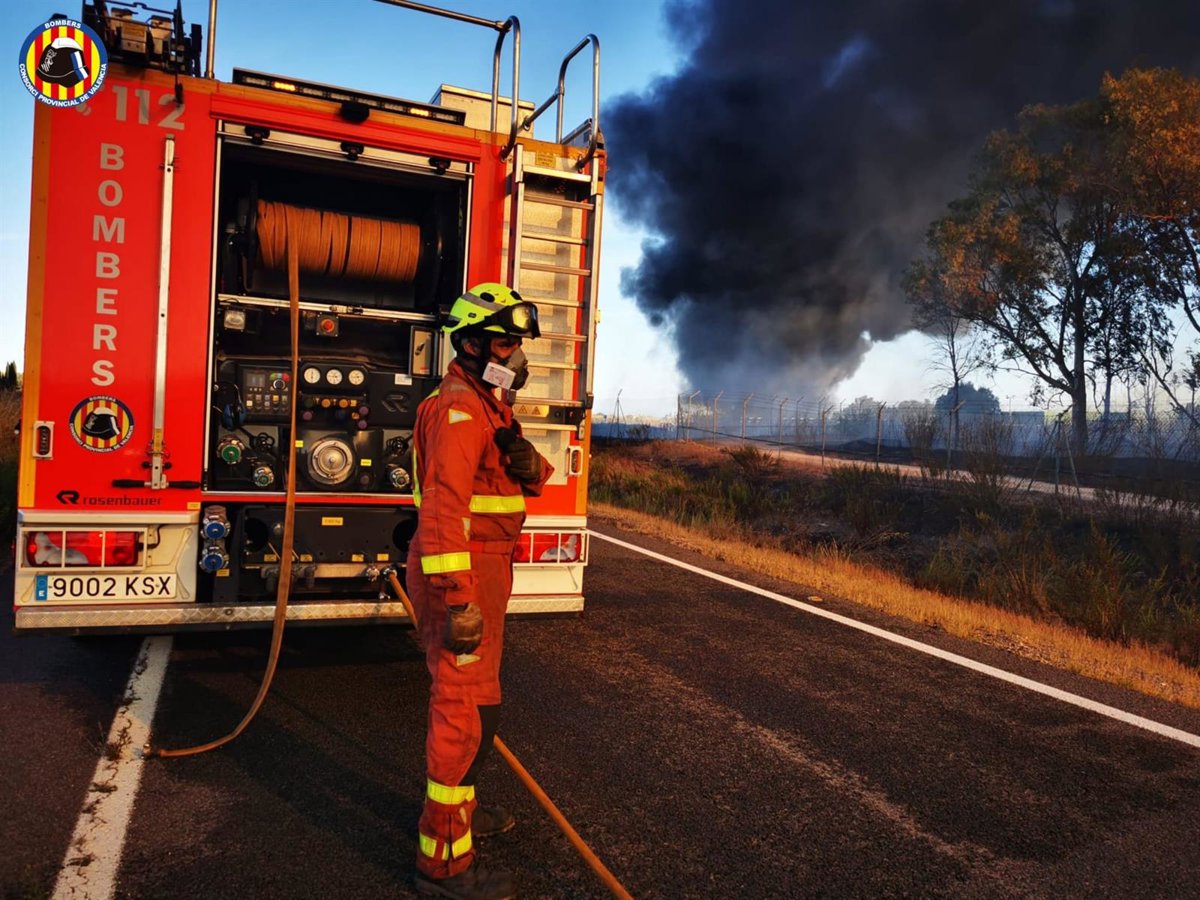 Bombero en el incendio junto a la valla de Ford - CONSORCIO DE BOMBEROS DE VALENCIA