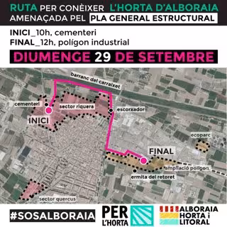Así, desde Per l'Horta han calificado esta caminata como "una oportunidad de saber más sobre el Plan General Estructural de Alboraia", que planea construir sobre hectáreas de huerta.